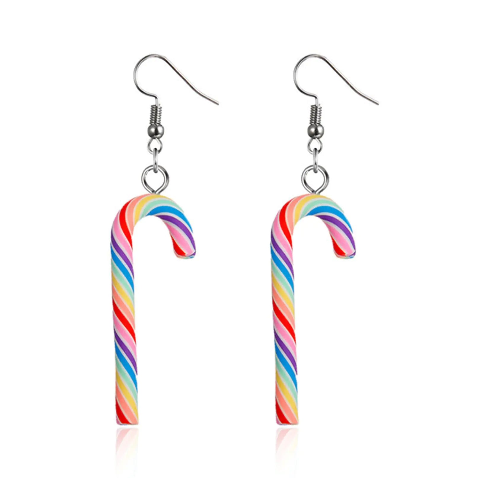 Festive Christmas Design: These candy cane earrings are the perfect accessory to add a touch of holiday cheer to any outfit. Featuring a colorful rainbow stripe pattern reminiscent of traditional Christmas treats these earrings are a must-have for the holiday season.